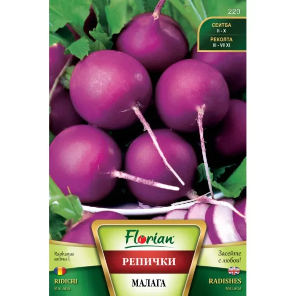 - Описание: Ранен сорт с високи добиви и едри плодове. Кореноплодите са кръгли, с наситено лилав цвят, хрупкави и сочни, подходящи за прясна консумация с отлични вкусови качества.